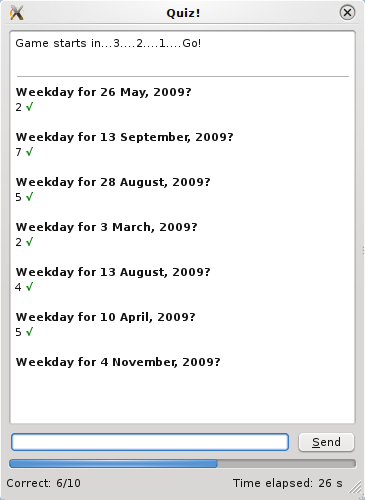 Right now the date quiz only asks for dates in 2009, but I have to change it to 2010 now. When I’ve become better I’ll make it generate a random year in the 21th century.