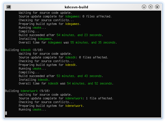 When everything has been set up we can let kdesvn-build perform its magic. As kde-devel: