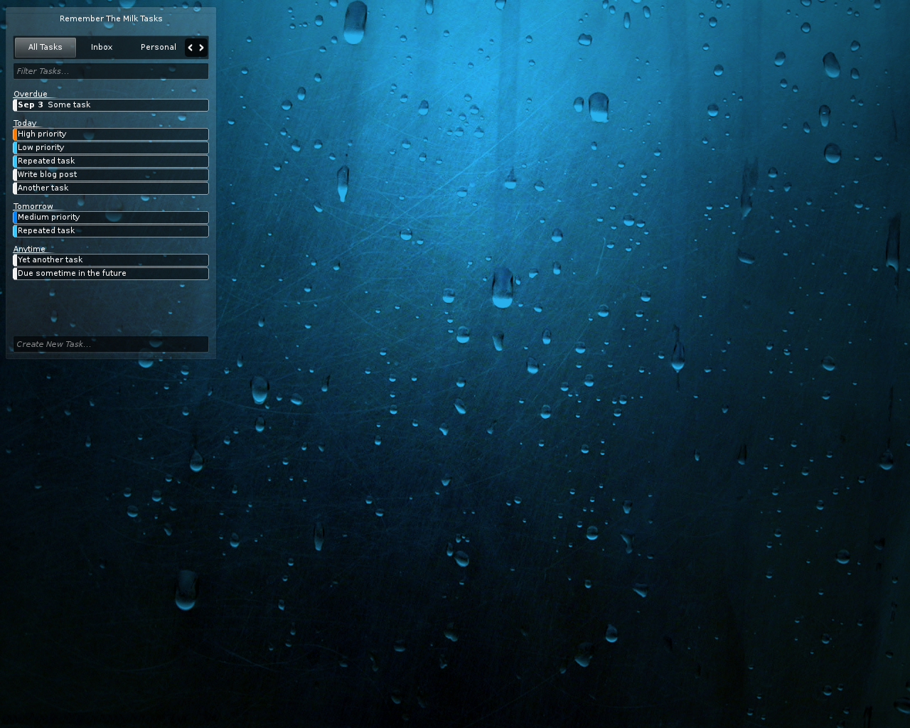 Note: for some reason I haven’t been able to authenticate with Remember The Milk Service since yesterday. I’m not sure what the problem is, but the original widget has the same problem, and it has happened before.